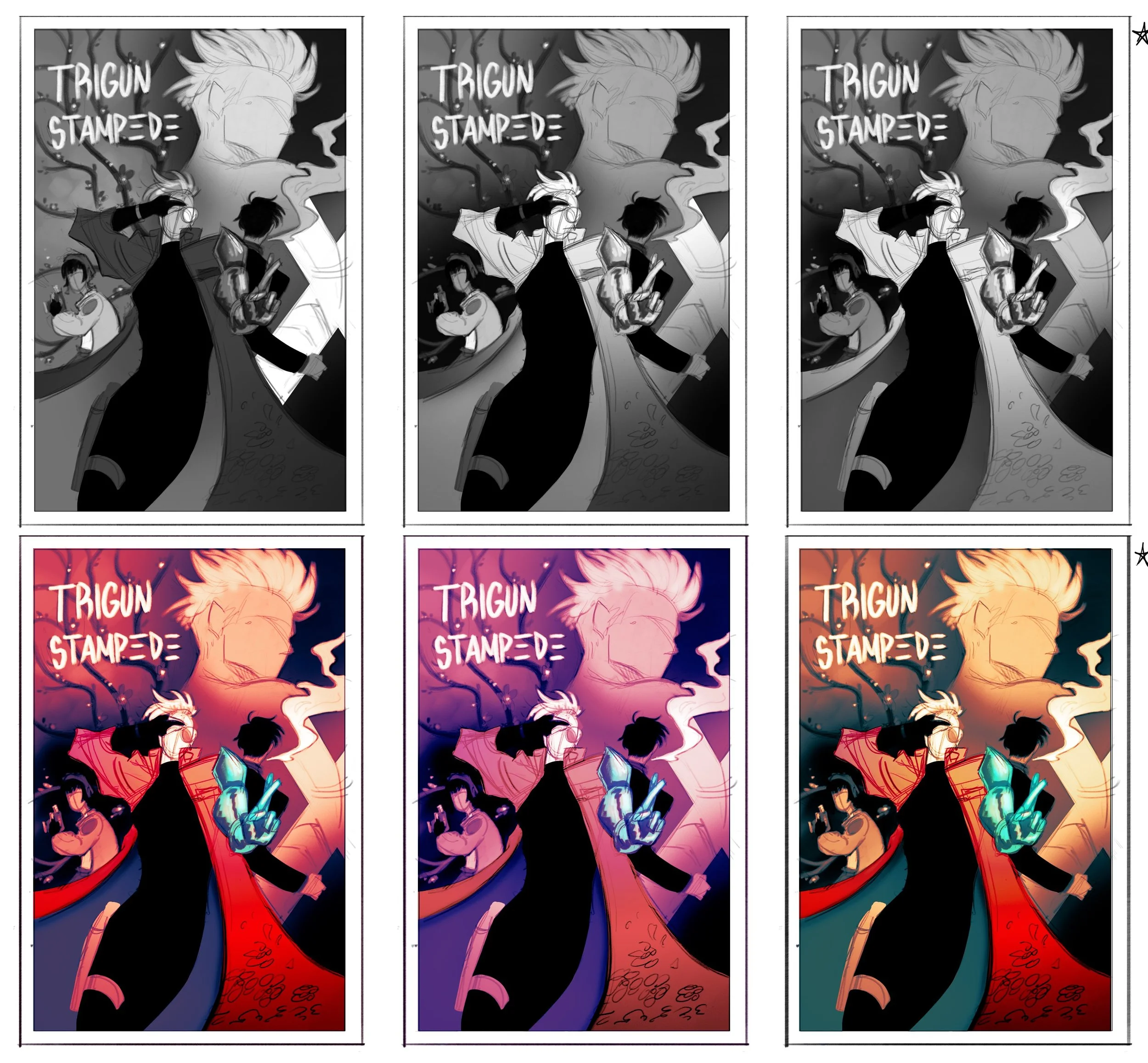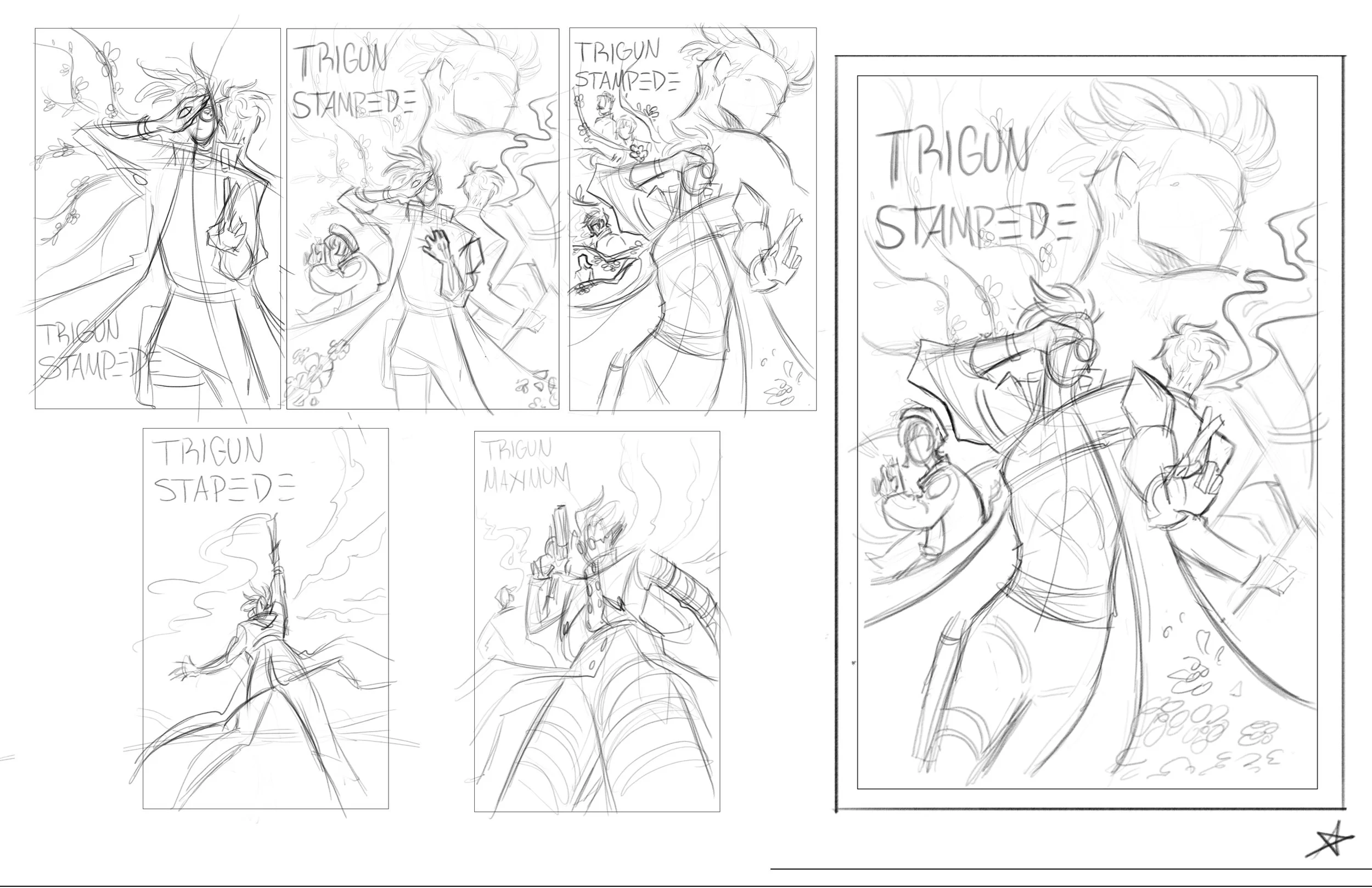 A fan poster I created for the anime Trigun Stampede. Color and value studies. Initial sketches. Slide 1 Slide 1 (current slide) Slide 2 Slide 2 (current slide) Slide 3 Slide 3 (current slide) Animated Version